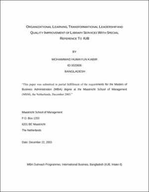 Organizational Learning, Transformational Leadership and Quality Improvement of Library Services With Special Reference To IUB