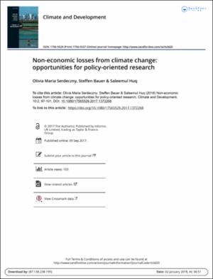 The concept of non-economic losses (NELs) has recently emerged in the context of negotiations on loss and damage under the United Nations Framework Convention on Climate Change (UNFCCC). NELs are losses of values that are not commonly traded in markets but bear high relevance for those affected. Examples include loss of life, biodiversity and cultural heritage. The ongoing institutionalization of approaches to loss and damage under the UNFCCC offers great opportunities to provide a sound information base for policy- and decision-making on NELs. Available expertise to meet the emerging knowledge needs includes insights into relevant indicators, and adequate means of integrating NELs into decision-making processes that seek to reduce losses ex-ante. Further research is needed to identify or develop appropriate responses to NELs ex-post. Here, historical analogues of loss and practices of remembrance and recognition can provide valuable insights. Opportunities for engagement exist at the UNFCCC’s science-policy interface. These include participation and active engagement at open meetings under the UNFCCC to advance exchange on applied research that is framed around policy-relevant questions on NELs as well as interaction with the expert group on NELs that was set up under the designated policy body to work on loss and damage under the UNFCCC, i.e. the Warsaw International Mechanism.
