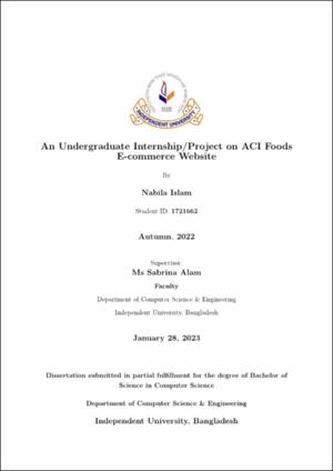 (Independent University, Bangladesh, 2023-01-28)Working as a Web Developer Intern in the MIS department at ACI Limited was where I worked. My assignment to create an ”ACI Foods E-commerce Website” for the Web was given to me during my internship. With the use of this ... -