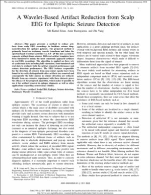 (IEEE, 2015-07-15)This paper presents a method to reduce artifacts from scalp EEG recordings to facilitate seizure diagnosis/detection for epilepsy patients. The proposed method is primarily based on stationary wavelet transform and takes ... -
